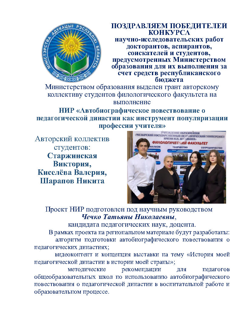 ПОЗДРАВЛЯЕМ С НАЗНАЧЕНИЕМ СТИПЕНДИИ ПРЕЗИДЕНТА РЕСПУБЛИКИ БЕЛАРУСЬ!