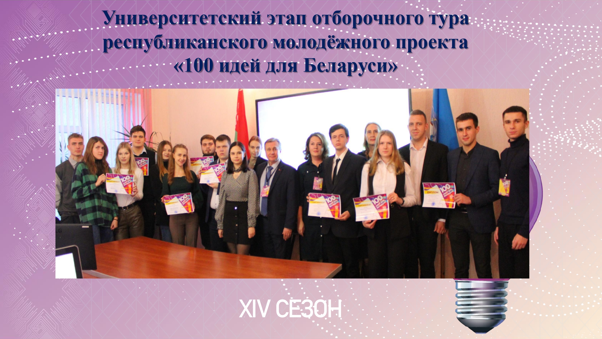УНИВЕРСИТЕТСКИЙ ЭТАП ОТБОРОЧНОГО ТУРА РЕСПУБЛИКАНСКОГО МОЛОДЁЖНОГО ПРОЕКТА «100 ИДЕЙ ДЛЯ БЕЛАРУСИ»