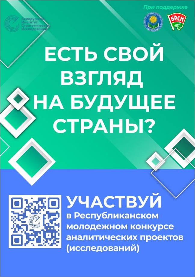 Белорусский институт стратегических исследований при поддержке Министерства образования Республики Беларусь и общественного объединения «Белорусский республиканский союз молодёжи» проводит конкурс с целью выявления талантливой молодёжи с аналитическими навыками, умением работать с информационными ресурсами и материалами.