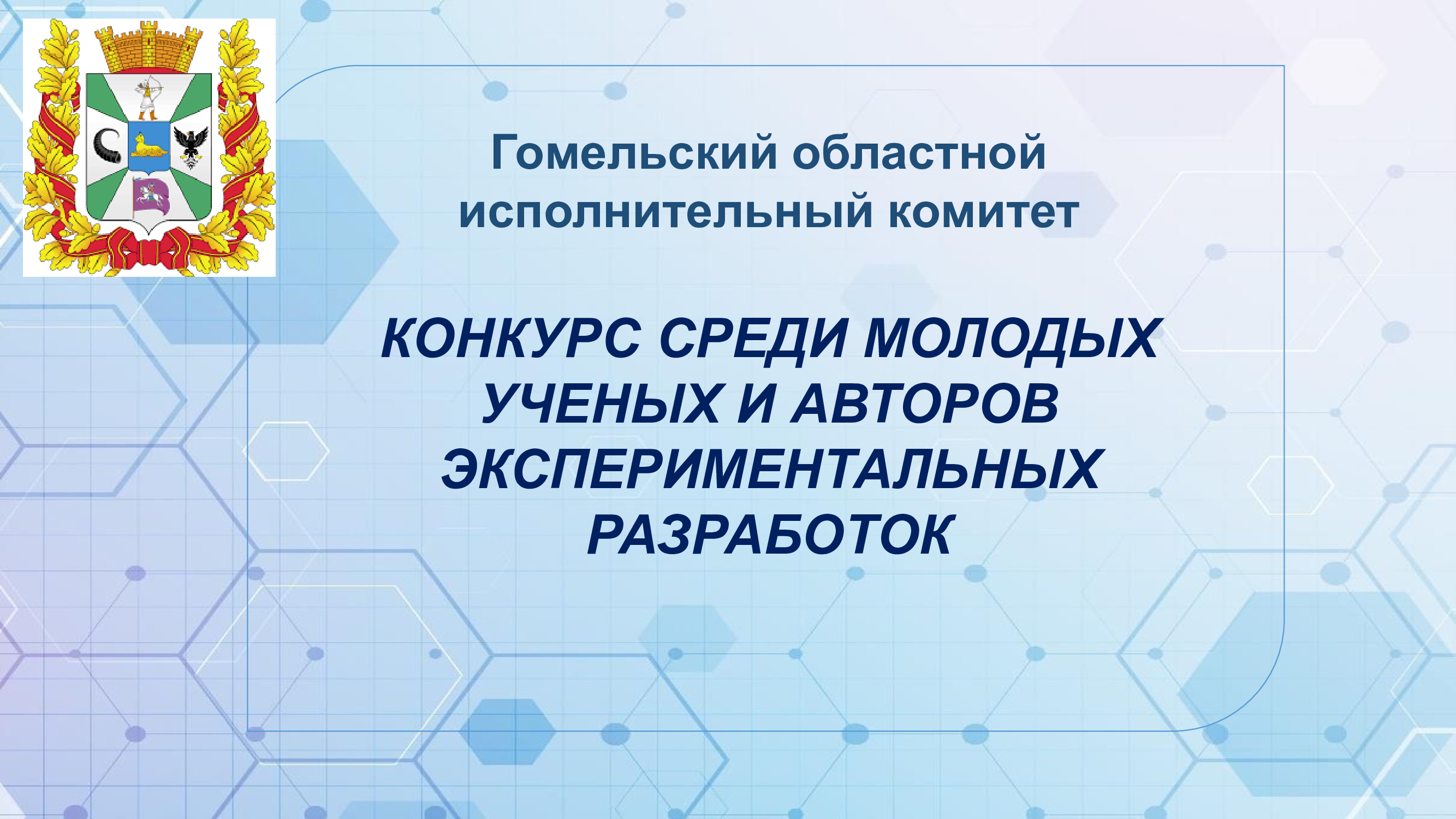 Гомельский областной исполнительный комитет приглашает принять участие в конкурсе среди молодых ученых и авторов экспериментальных разработок.