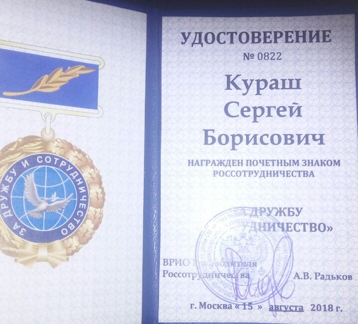 За многолетнюю плодотворную работу по развитию международного гуманитарного сотрудничества доцент кафедры белорусской и русской филологии Кураш Сергей Борисович, кандидат филологических наук, доцент, награжден высшей ведомственной наградой Федерального агентства Россотрудничества Министерства иностранных дел Росссийской Федерации, присуждаемой гражданам иностранных государств, – Почетным знаком Россотрудничества «За дружбу и сотрудничество».
