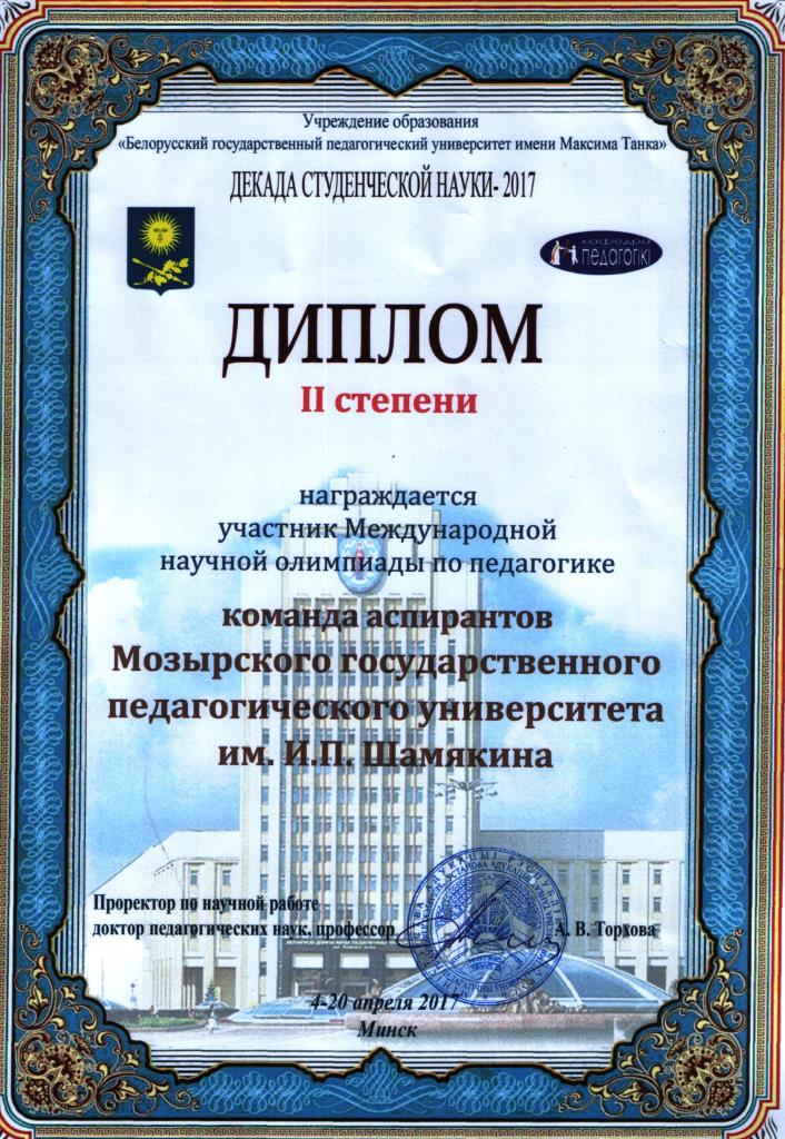 20 апреля 2017 года в рамках Декады студенческой науки в учреждении образования «Белорусский государственный педагогический университет имени Максима Танка» состоялся финальный этап Международной научной олимпиады по педагогике.