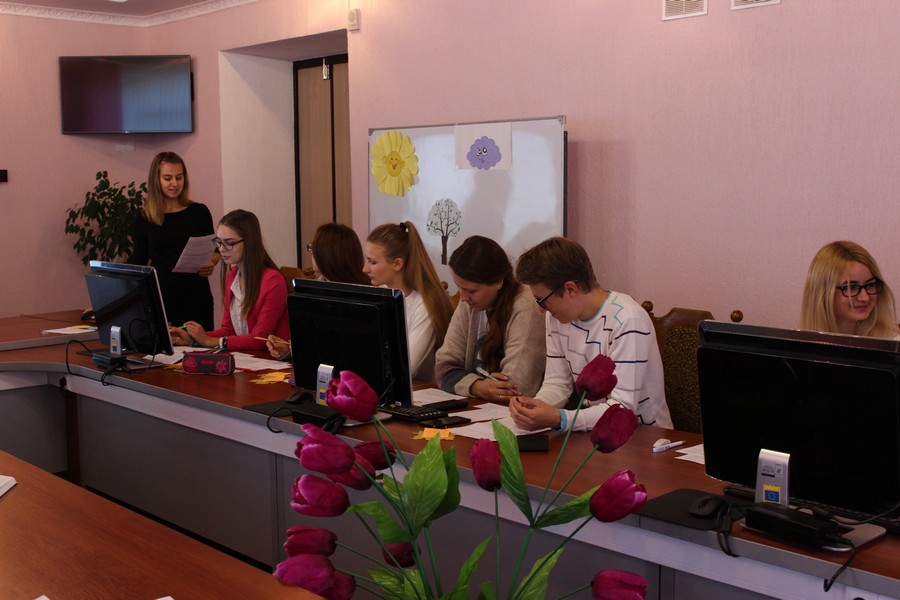 Мария Рябцева предложила участникам составить пословицы на тему урока «Учись творить добро», а также рассказать, какие хорошие качества студенты выявляют у своих друзей и семьи. В следующем упражнении нужно было выбрать слова, обозначающие добро и зло, и разместить их вокруг солнца и облака. М. Рябцева завершила свой фрагмент заданием, которое заключалась в том, чтобы написать добрые слова или пожелания и поместить их на дереве пожеланий, расположенное на доске.