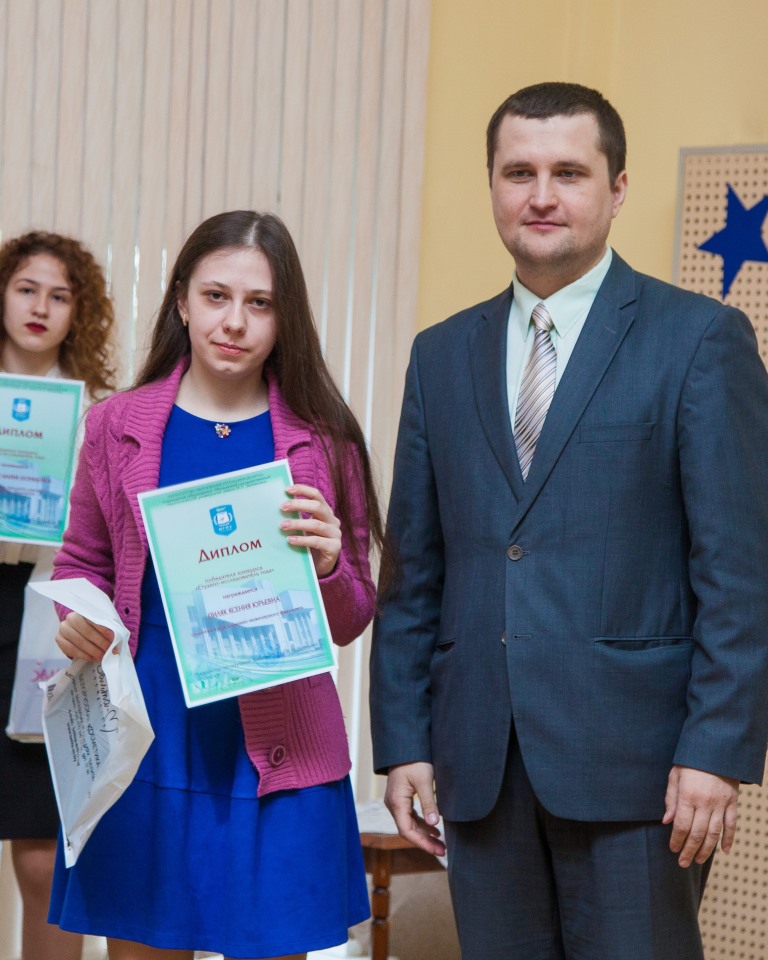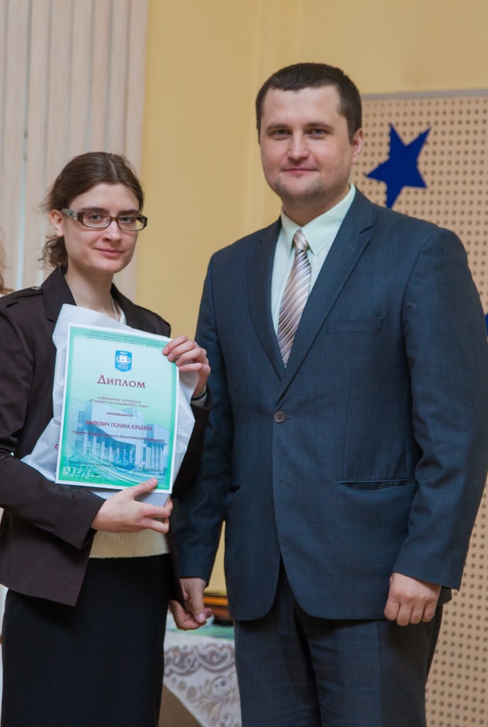 Проректор по научной работе Валерий Николаевич Навныко вручил дипломы победителям общеуниверситетского конкурса «Студент-исследователь года»: