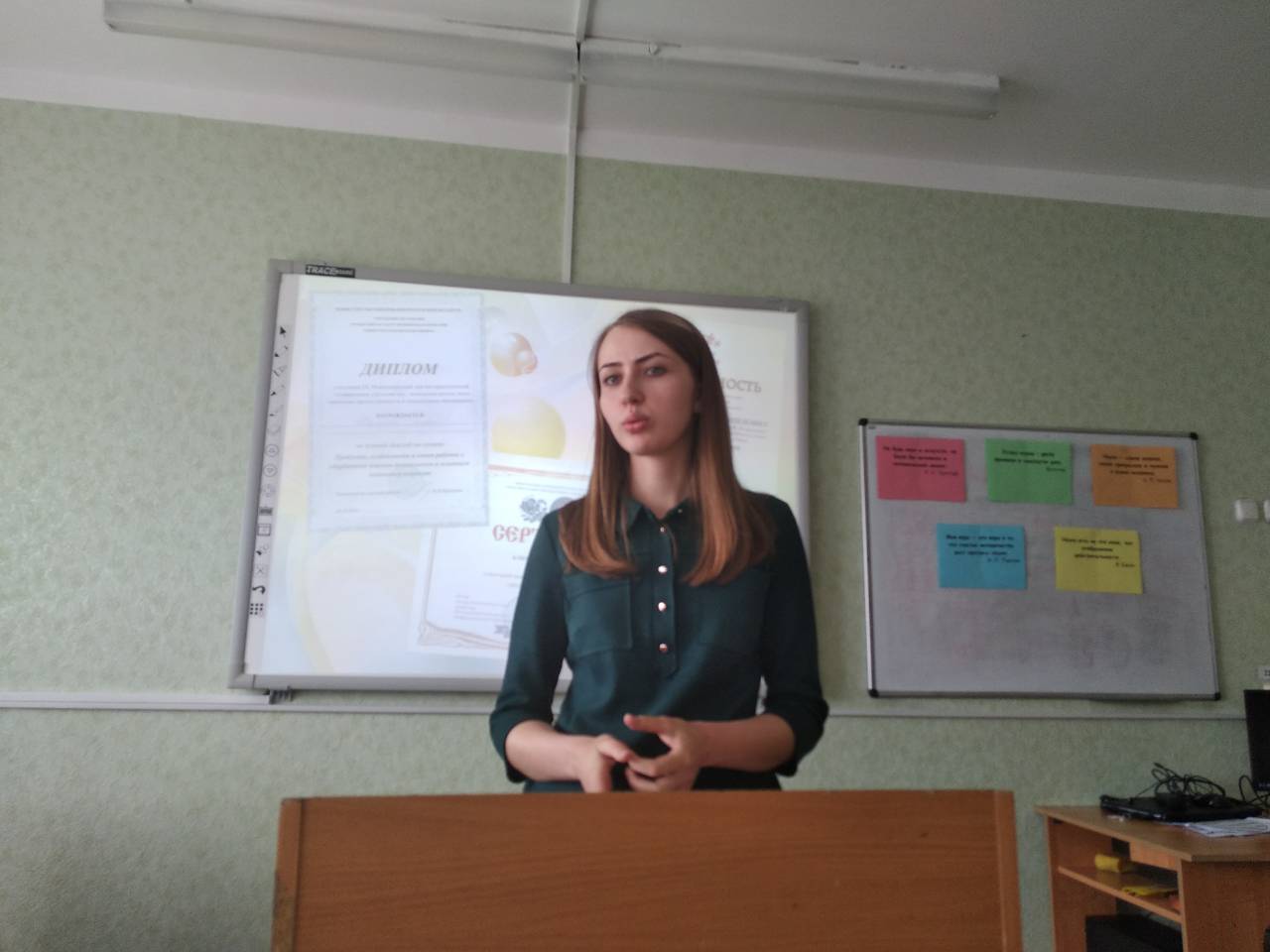 еред студентами выступила выпускница 2017 года, в настоящее время учитель начальных классов ГУО «Средняя школа № 14 г. Мозыря», Клименко Мария Леонидовна. Она рассказала, что ее дипломная работа (научный руководитель: Карпович И.А.) в конкурсе студенческих научных работ получила первую категорию. Мария Леонидовна отметила, что и сейчас, работая учителем в школе, она продолжает заниматься научно-исследовательской деятельностью.