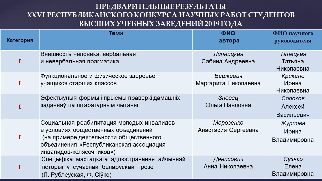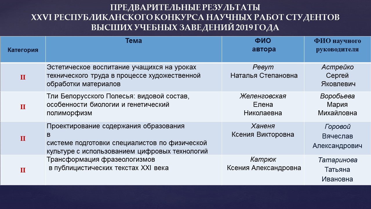 XXVI Республиканский конкурс научных работ студентов
