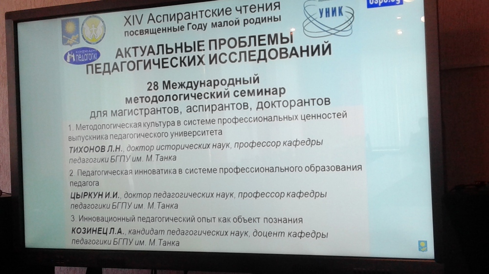 20 апреля 2018 года в рамках Декады студенческой науки в БГПУ им. М. Танка прошли XIV Аспирантские чтения «Актуальные проблемы педагогических исследований», посвященные Году малой родины.